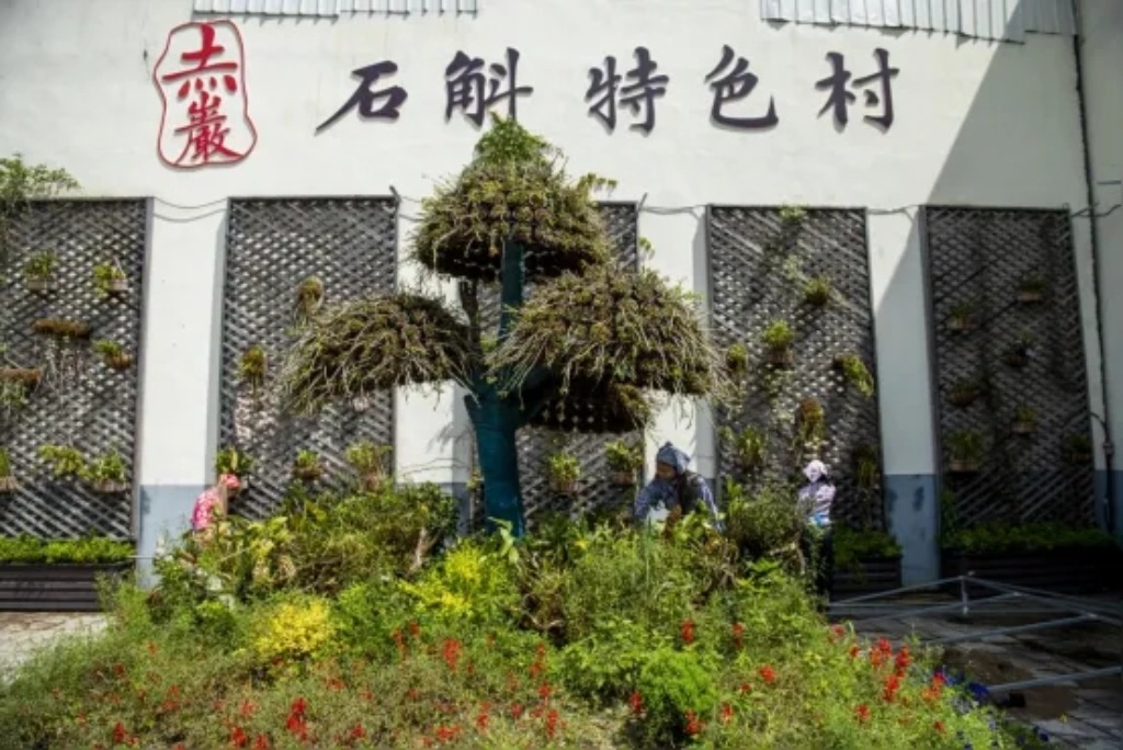 不止于此,赤岩村更以石斛为媒,推动生态农业与乡村旅游深度融合。村里先后打造铁皮石斛产区观光区,建设百年古树上的野生铁皮石斛网红观光点、集中区产区步道,打造石斛主题村标、百草堂、石斛墙等打卡点,提升游客观光体验感。
