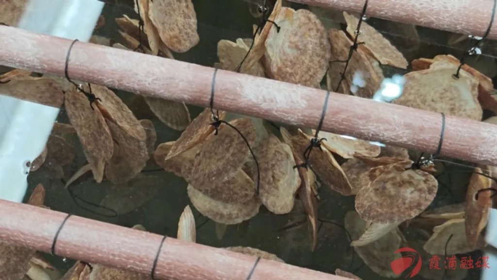 在霞浦县三沙镇的一家省级紫菜良种育苗厂内,工人们正忙着将附有紫菜孢子的扇贝壳从水池中打捞出来,打包装车,准备运往海上养殖区。当地推广的这种扇贝壳育苗方式,能有效促进紫菜孢子均匀附着和萌发。一根根贝壳串悬挂于育苗池中,既能保证紫菜苗均匀吸收光照和养分,又能让苗体长势更整齐健壮。