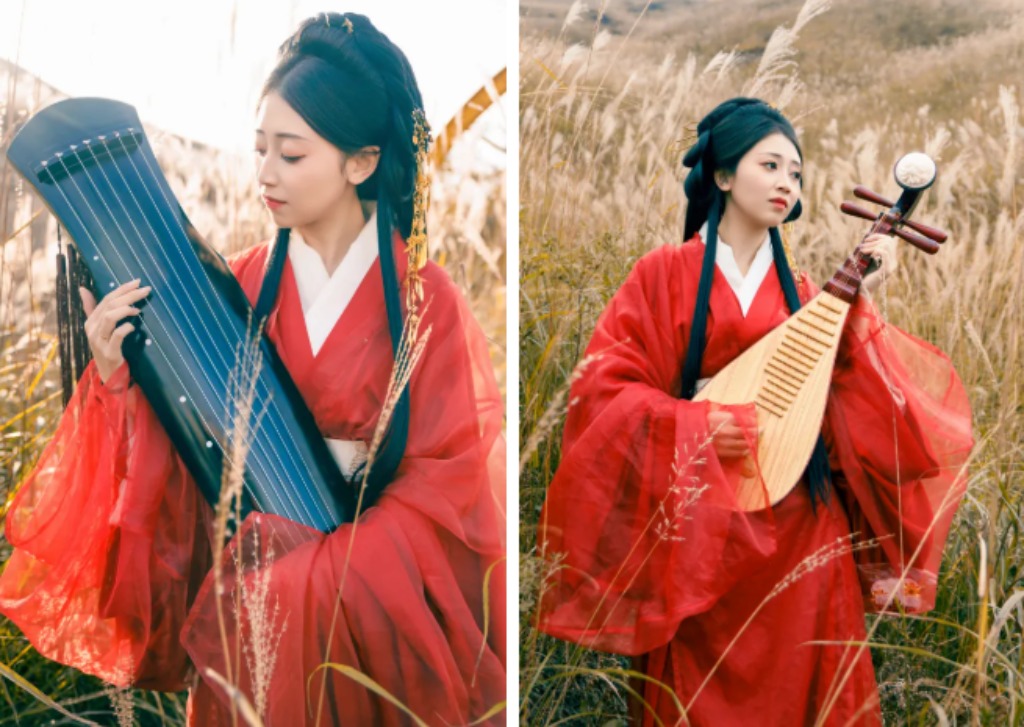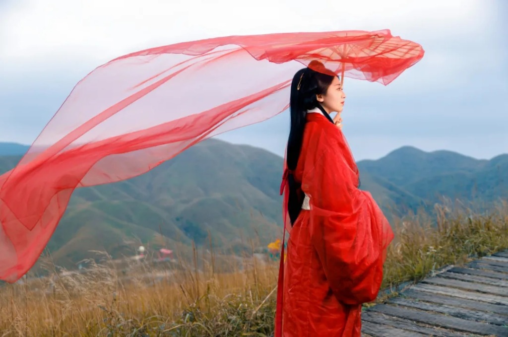 手提竹编灯笼,或携带古琴、油纸伞等道具,漫步草场小径,手扶栅栏远眺,用镜头收藏限定版的诗意江湖。