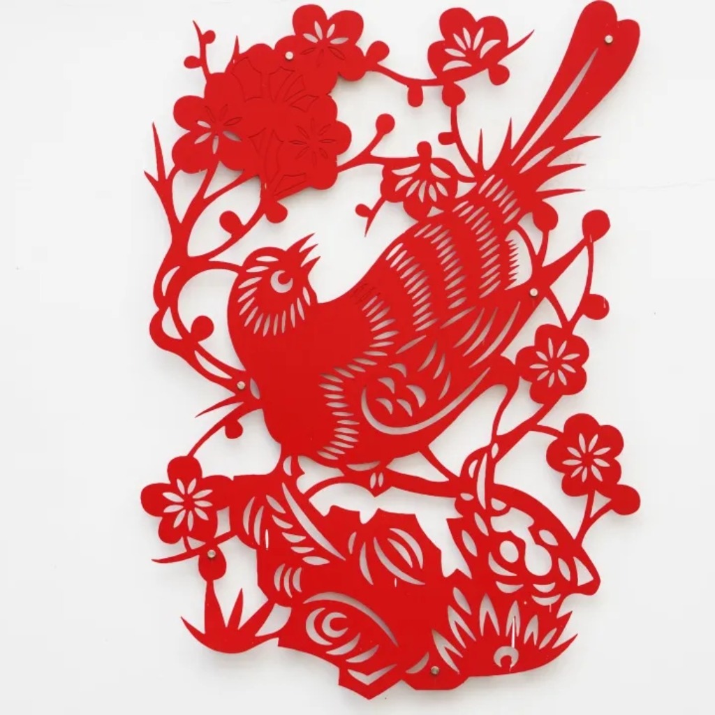 文化墙上中国剪纸第一村的题字苍劲有力,旁侧一幅巨型剪纸花鸟图栩栩如生:牡丹绽放吐艳,喜鹊登枝鸣春,既有对自然生灵的敬畏,更藏着“富贵吉祥”的朴素祈愿。这便是靴岭尾剪纸的灵魂,用极简线条,承载最深厚的文化情怀与生活热爱。
