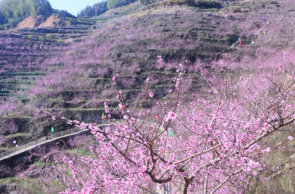 这片占地130余亩的梯式桃花园,