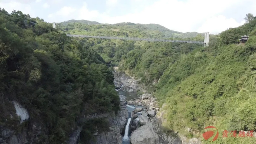 在青山绿水环绕的峡谷间,游客们乘坐橡皮艇顺流而下,开启一段惊险与惬意交织的漂流之旅。全程近4公里的漂流线路实现无缝衔接:前段1公里为高空玻璃滑道,透明栈道凌空飞架,俯瞰深谷溪流,令人心跳加速;后段2.8公里则穿行于原始峡谷与飞瀑之间,时而急流勇进、冲波击浪,时而缓行于碧水清潭,悠然欣赏两岸秀美风光。