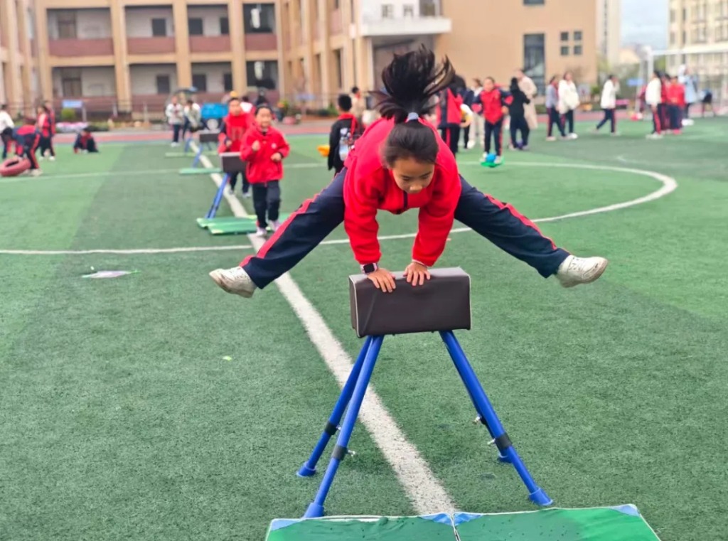 本次课间活动展示设置了跳皮筋、滚铁环、趣味闯关、篮球、足球等25项内容,涵盖传统民间体育、身体素质发展、球类运动等多个类别,县第三小学结合校园实际,因地制宜划分出传统游戏区、益智休闲区、自由活动区三大活动区域,充分展现了学子阳光向上、积极进取的精神风貌,切实让课间15分钟成为学子补充能量、陶冶情操的“黄金时段”。