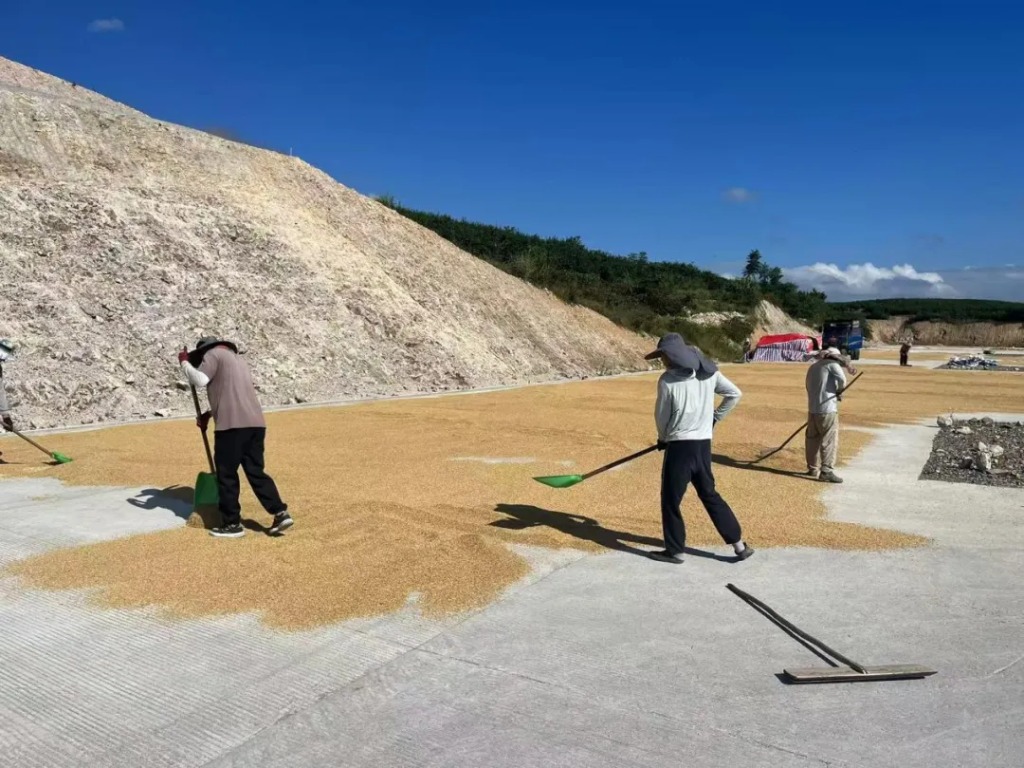 稻谷黄,秋收忙。近段时间以来,水门畲族乡茶岗村、高盘村的新建晒场,成了秋收晾晒的“主舞台”,确保粮食颗粒归仓。