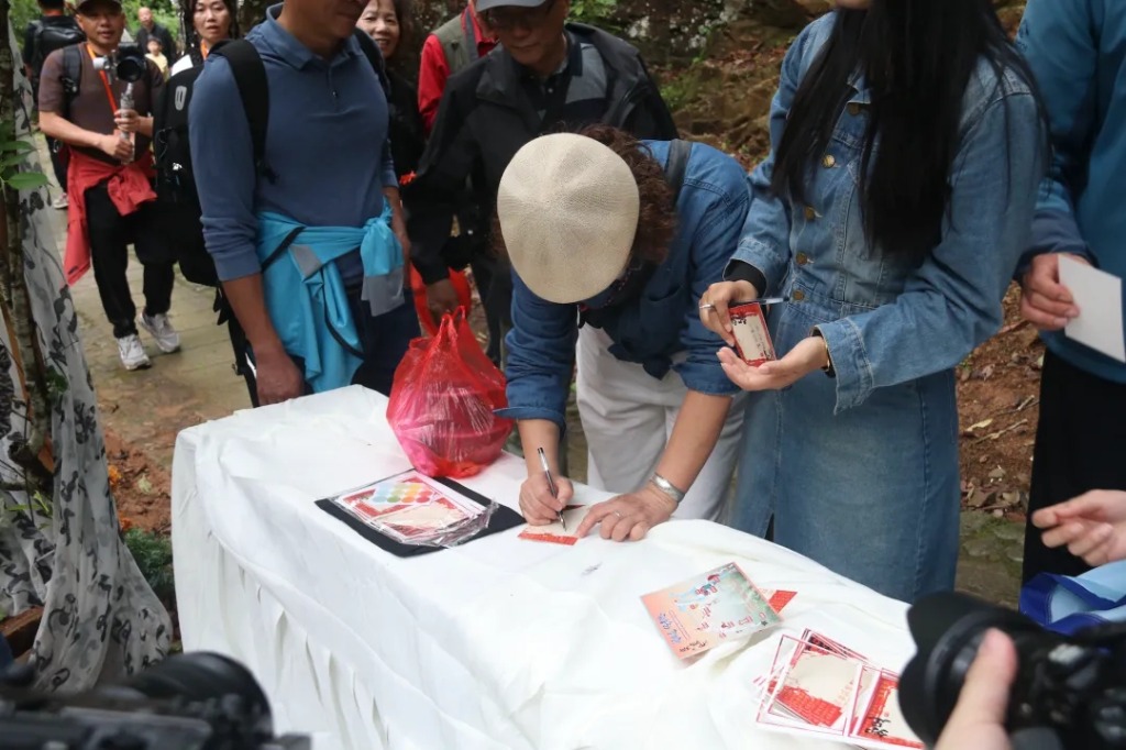 随后,游客们踏上“踏青云之路·历状元五仪”的沉浸式体验之旅。走过状元桥,在状元信箱中投入“志向卡”,静待次年开启;驻足福叠亭,品味茶香、聆听茶文化,体验“以茶明心”之道;行至蝴蝶谷广场,击打三声状元鼓,喊出励志口号,寓意“三生万物、步步高升”;在文心亭旁,轻抚“宅中乡状元文脉帽”,祈愿才思敏捷、前程锦绣;登上折桂岭青云梯,领取“青云结业礼”,并在南风宫祈愿树上系上祈福牌,许下美好愿望。