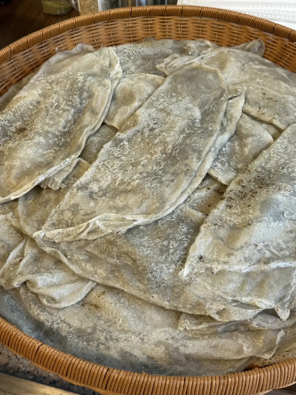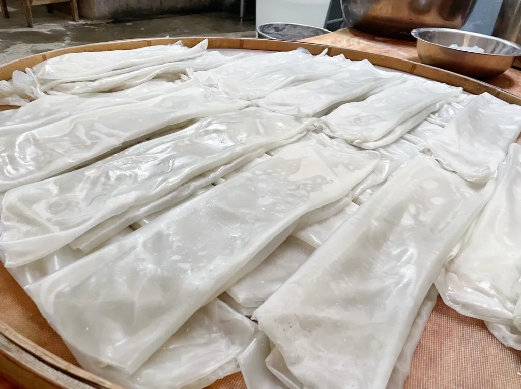 首先选用高山种植、淀粉饱满的地瓜,洗净去皮;接着磨浆过滤,将地瓜手工捣成浆,用细布反复过滤,只留纯净薯浆,再经多次沉淀,沥干水分制成细腻薯粉,而后薯粉加山泉搅匀成稠浆,舀入蒸笼摊成薄皮,慢蒸至晶莹剔透,蒸好的粉皮微凉后对折静置,保持柔韧不裂。最后切丝晾晒,阳光赋予粉扣干爽紧实的质地,久存不腐、久煮不烂。“机器做得快,做不出这口韧劲儿。”十几道工序,沉淀的是薯浆,更是柘荣人对食材的敬畏与对手艺的坚守。