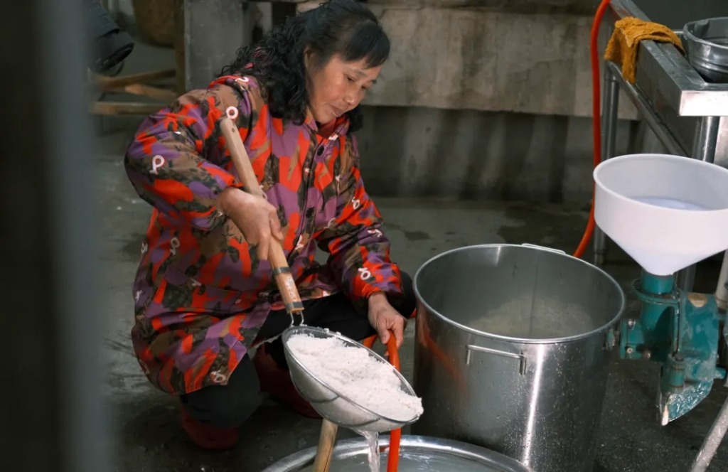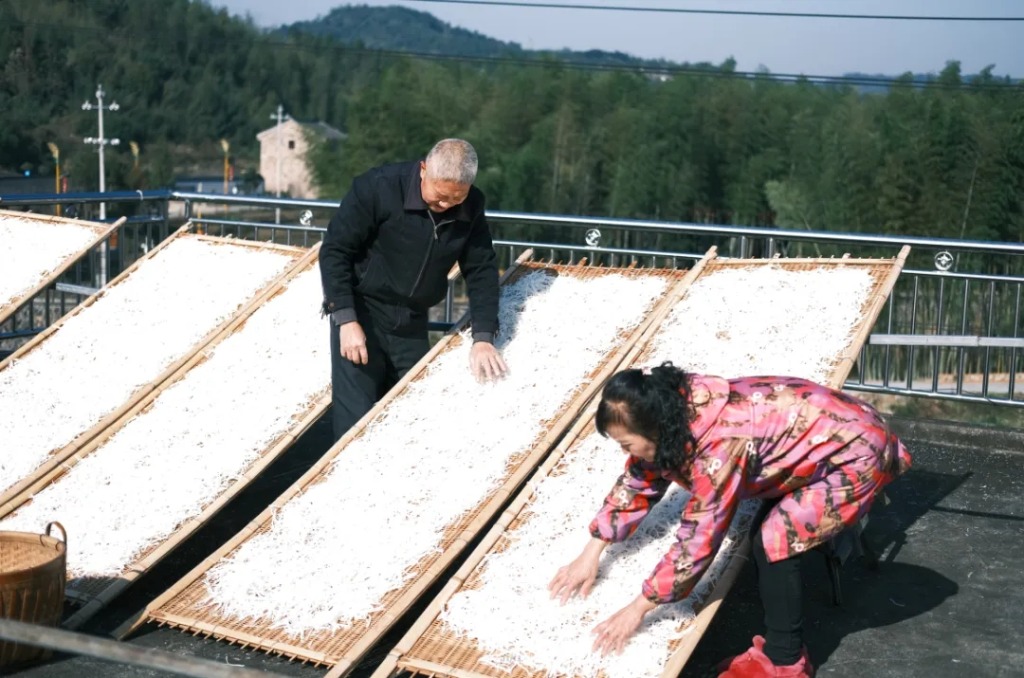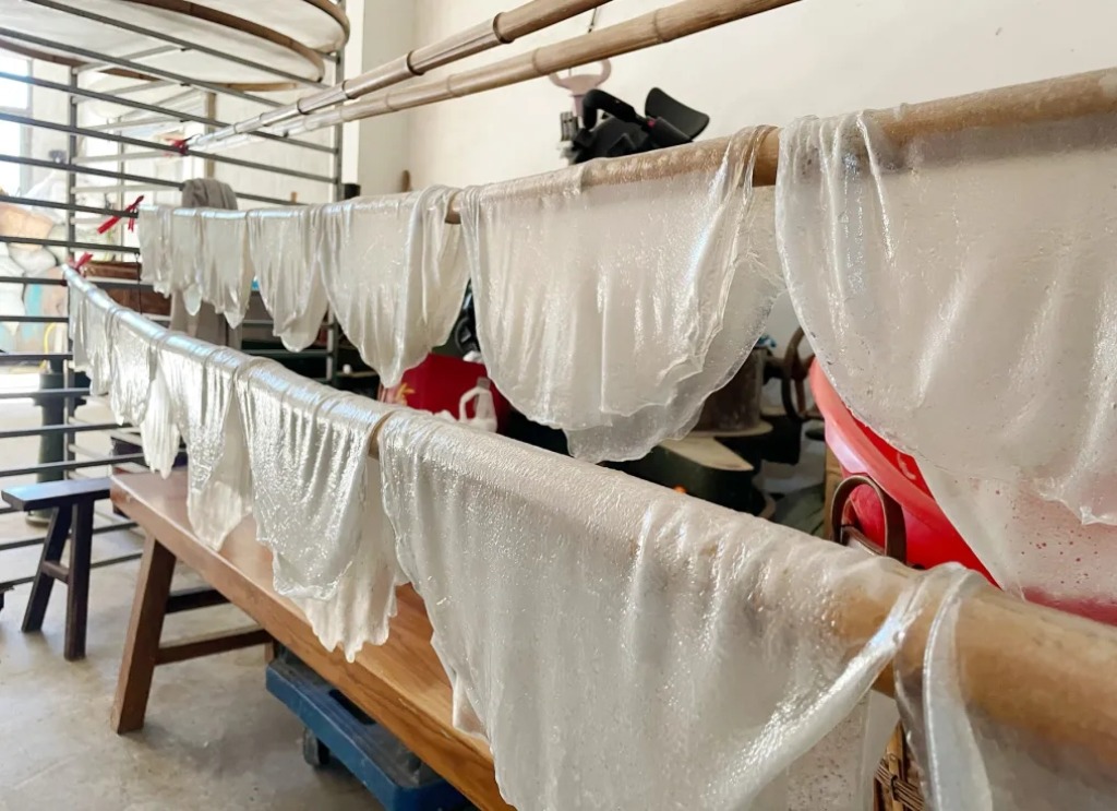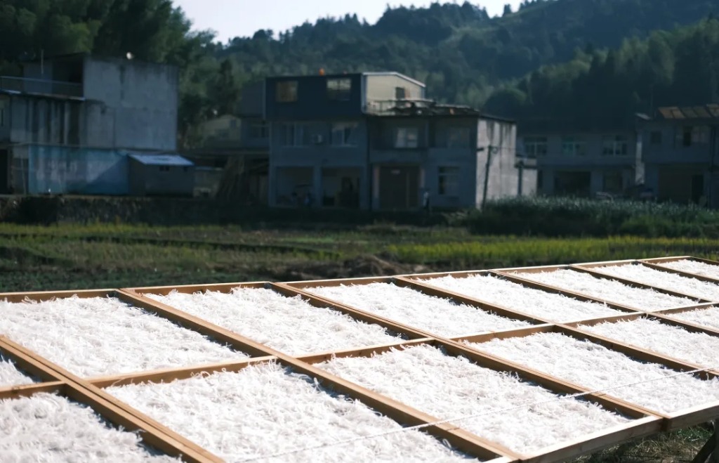 相传,旧时山区物资匮乏,地瓜是百姓的主粮,可老人肠胃虚弱,难消化整块地瓜,一位聪慧的村妇便将地瓜用石碓捣烂,以山泉冲洗、滤去粗渣,让淀粉慢慢沉淀,反复提纯后制成细腻薯粉,薯粉蒸成薄皮、切成细丝,烹煮后软糯易食,这门手艺也在邻里间口口相传,传承至今。