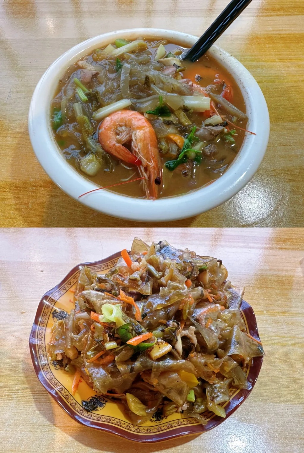 从山间地瓜到餐桌珍味,从果腹充饥的主食到如今代代传承的地方特色小吃,这份滋味已经成为柘荣人最熟悉的家乡老味道之一。将已经切成粗细、大小不一的丝状或片状的地瓜粉扣,沸水煮至柔软浮起,加少许盐、葱花、猪油,清鲜纯粹,或是加上各种肉类海鲜,丰俭由人,粉扣吸饱汤水,软糯中带着弹牙;另一种常见做法是搭配五花肉、香菇、虾仁、芹菜段,热油爆香配料,下入泡软的粉扣快炒,淋上少许生抽与老酒,粉扣裹着鲜香汤汁,筋道爽滑,入味不碎,咸香适口,是宴席上的压轴菜,也是家常餐桌的暖心味。