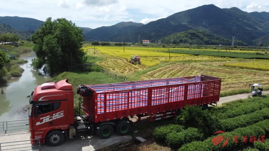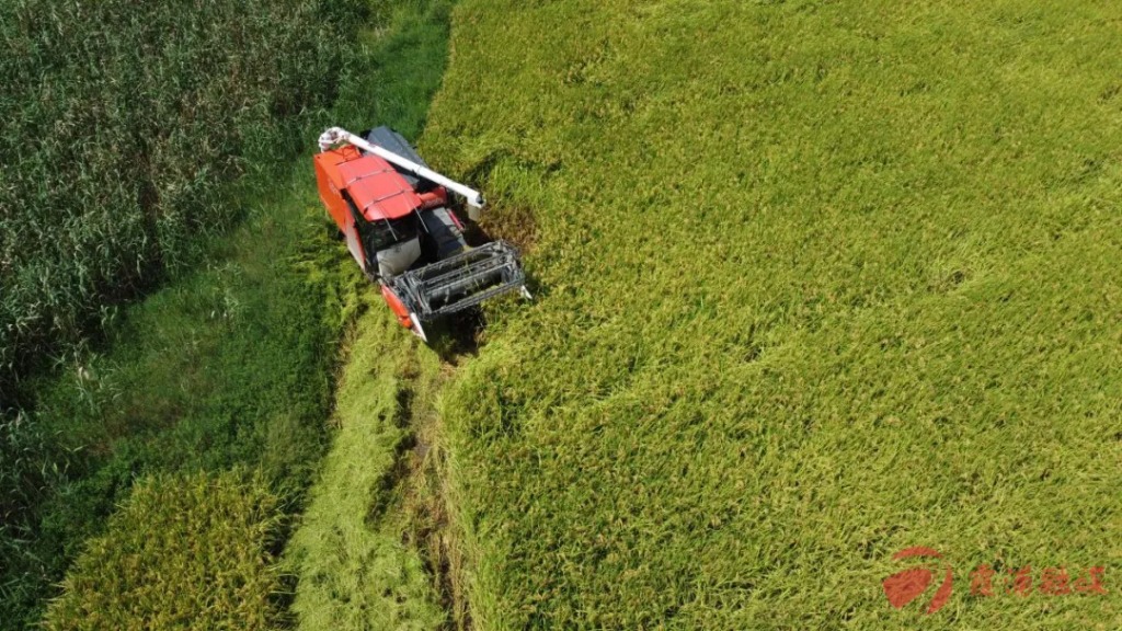 走进田间,收割机在稻田里穿梭,高效完成割稻、脱粒、清选等工序;农户们协助转运粮食,脸上满是丰收的喜悦。