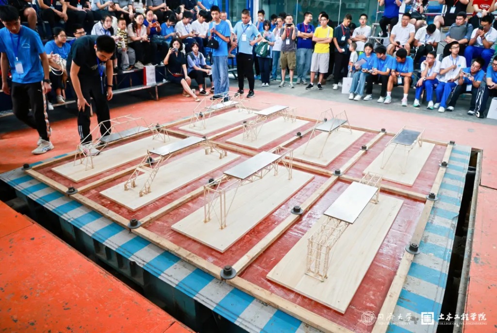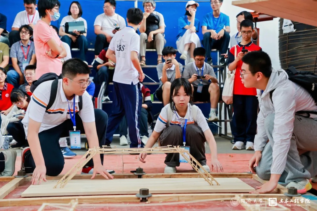 同济大学全国中学生结构设计大赛由同济大学主办,同济大学本科生院与招生办公室共同支持,同济大学土木工程学院承办,是国内中学生结构工程领域最具影响力与挑战性的竞赛之一。本届赛题《大跨桥梁抗震安全的极限挑战》,以大跨桥梁抗震为背景,要求参赛者设计优化桥梁结构形式,提升其抵抗竖向荷载和地震作用的性能,并以木材和胶水为原材料,现场制作一个满足赛题要求的桥梁结构模型。本届赛事旨在激发中学生创新意识,提升工程实践能力,增强团队合作水平,同时唤起中学生对中国桥梁的关注与热爱。大赛吸引了全国14个省、市、自治区的52所中学、249名师生,其中包括成都七中、上海中学、复旦附中、华师大二附中等诸多名校。