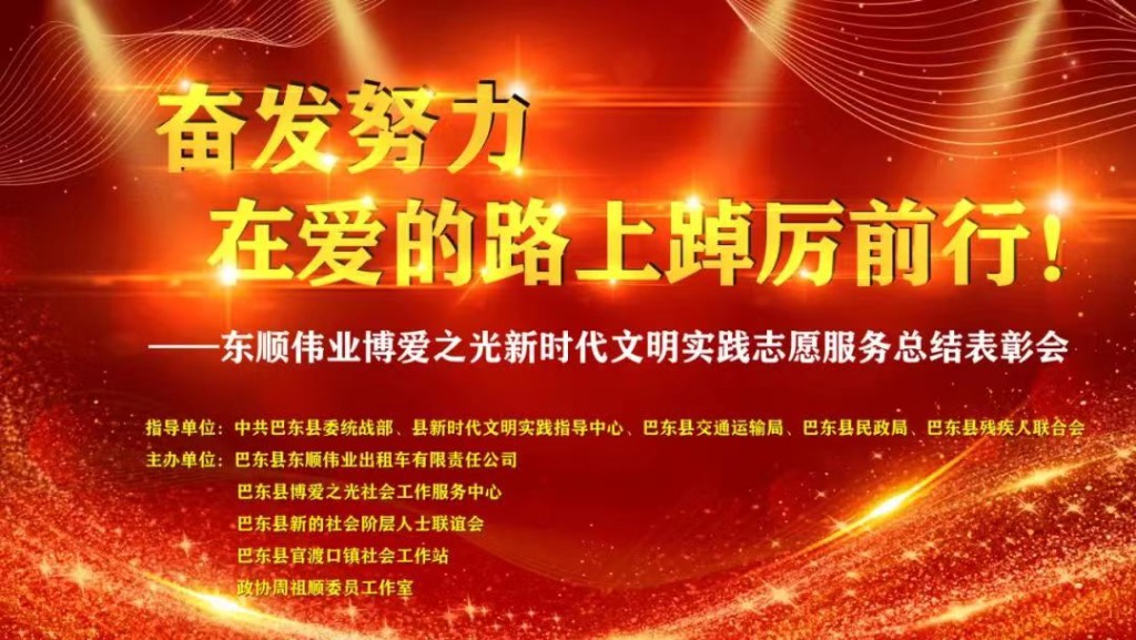为提振精神,激励斗志,辞旧迎新之际,巴东县东顺伟业出租车有限责任公司、巴东县博爱之光社会工作服务中心、巴东县新的社会阶层人士联谊会及政协周祖顺委员工作室,共同主办一场新时代文明实践志愿服务总结表彰会议。