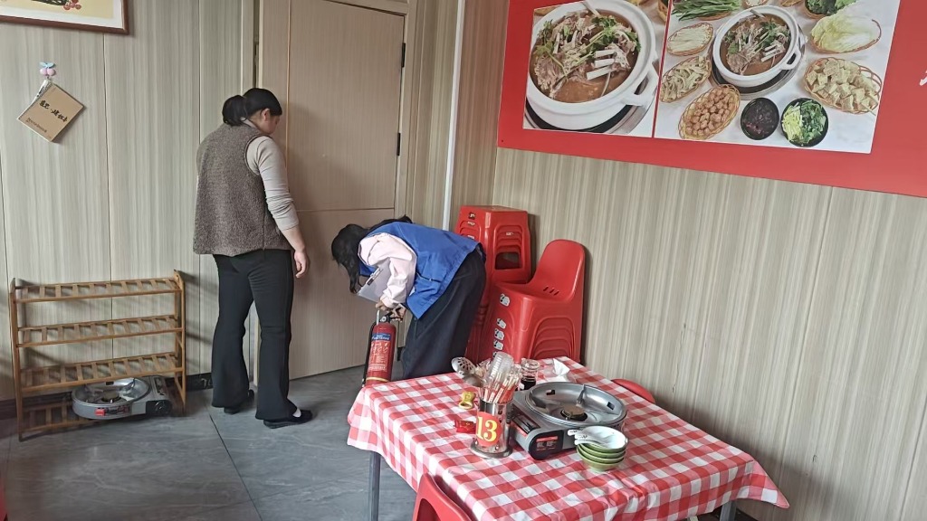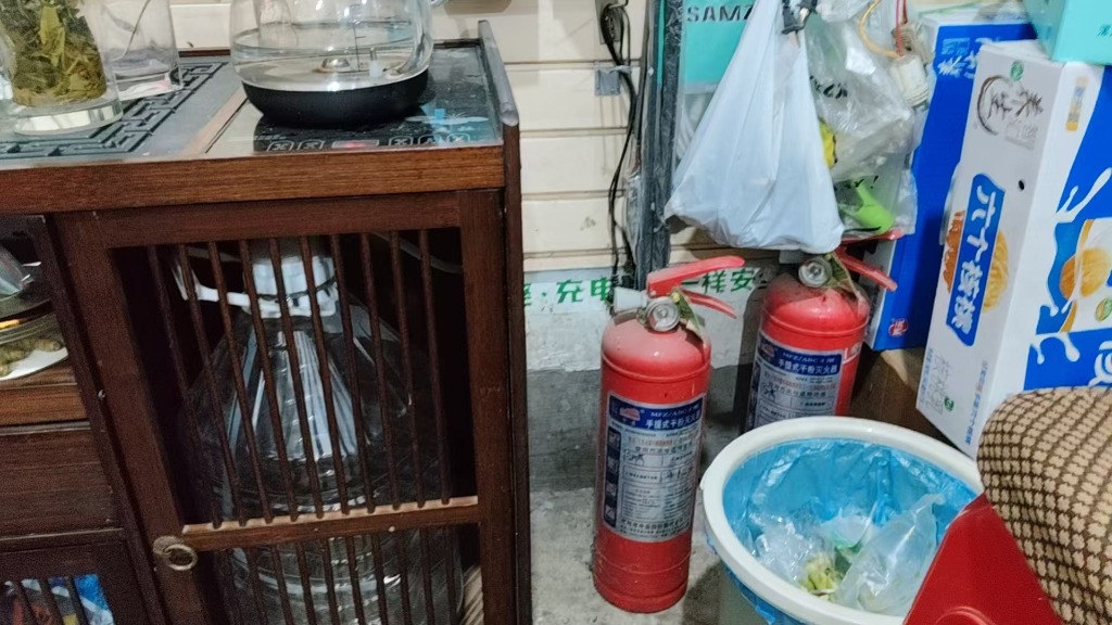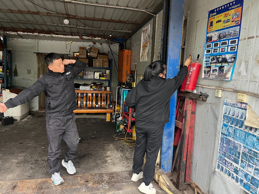 在一家超市里,社区安全管理工作人员看到2只存放已久的灭火器材,要求这家负责人在规定的时间内及时更换掉,跟随的社区网格信息员当场作了记录,在第一时间内上报到上级有关部门。