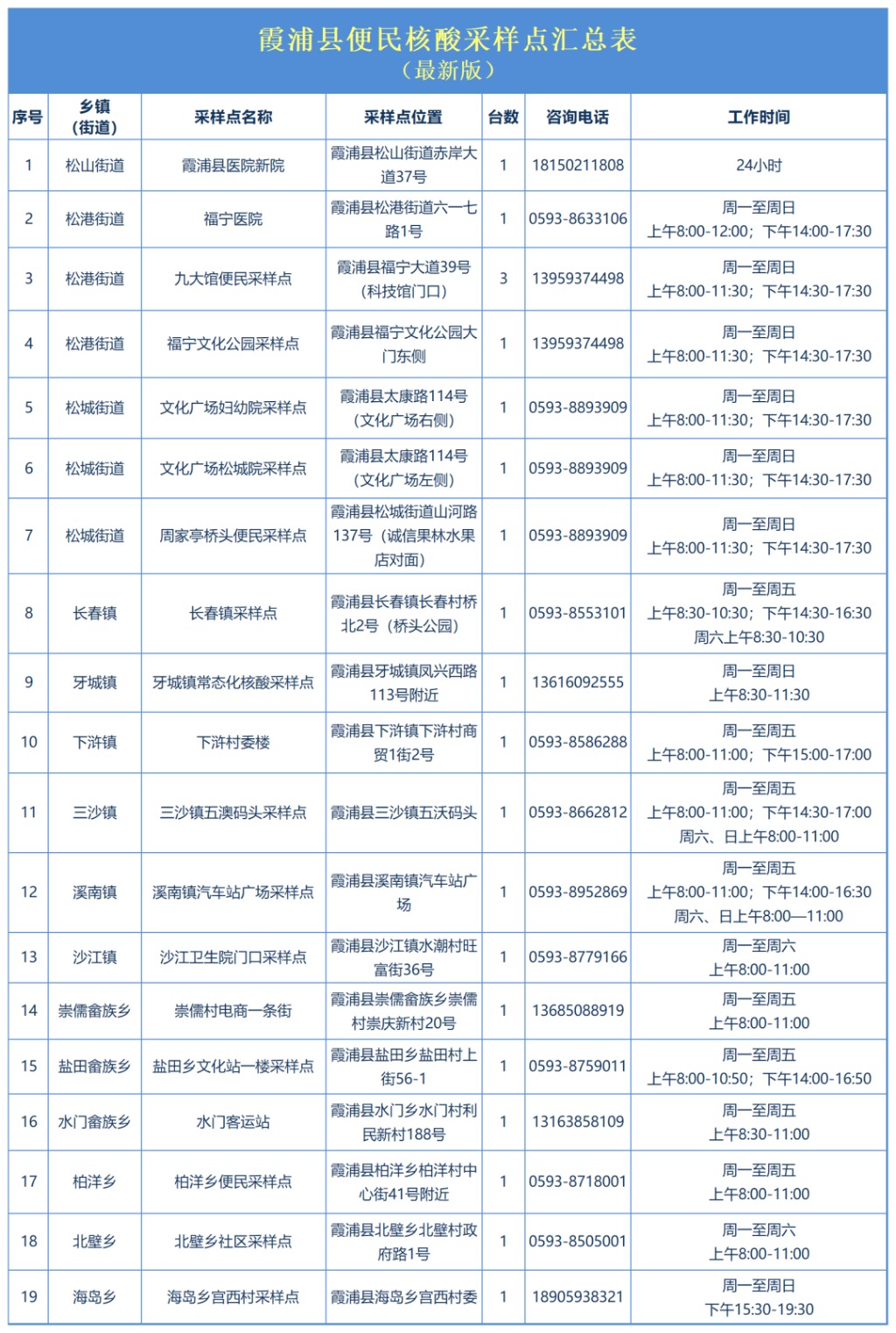 便民核酸采样点详情如下: