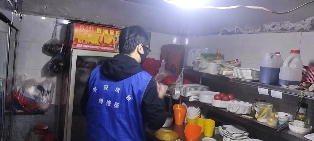 在一家餐饮店里,社区网格信息员走进厨房,现场查看了餐具卫生,以及店主使用的食材,并对冷冻柜里的食物进行抽样检查,查看完毕后,还与这家店主签订了《食品安全包保责任书》,确保让食客们能够用上放心食品。