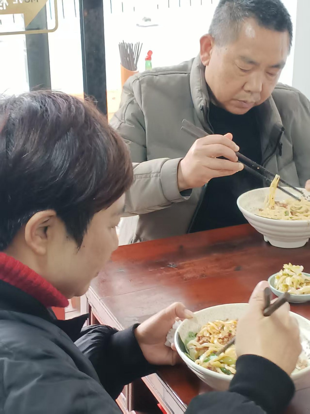 对待顾客,他始终笑脸相迎,热情周到,让每一位进门的食客都倍感亲切;说到诚信,他更是实打实的较真——每一碗面份量给得足足的,遇上饭量大的客人,喊一声加面,他二话不说就满足;浇头臊子也依着客人的口味调整,多一分少一分全随心意。深知众口难调,他便耐心引导食客自选口味,从汤底到配料,细细介绍,只求让大家高兴而来,满意而归。“诚信久远,追求无限”是他的经营理念,而让顾客吃出“回家的感觉”,则是他藏在烟火里的温柔心愿。