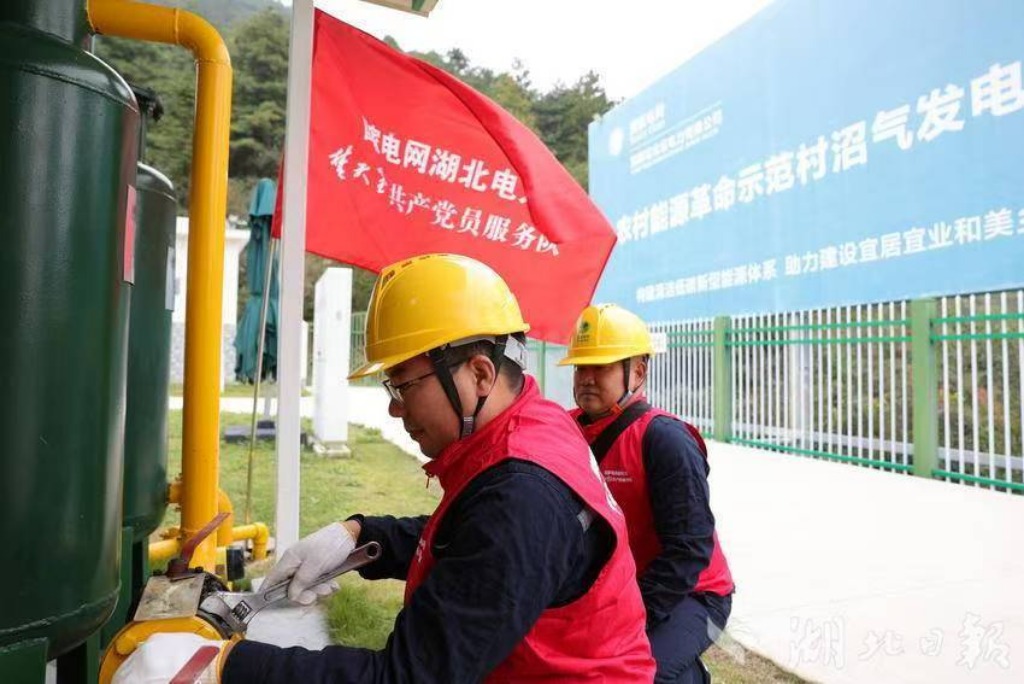 12月15日,在全国少数民族特色村寨巴东县土店子村,国家电网湖北电力(恩施巴东)楚天星火共产党员服务队仔细检查农村能源革命示范沼气电站沼气发酵罐、发电机组和并网设备运行状态,实时监测沼气产气量和发电效率,确保清洁能源稳定供应,助力少数民族地区“零碳村”建设之路。