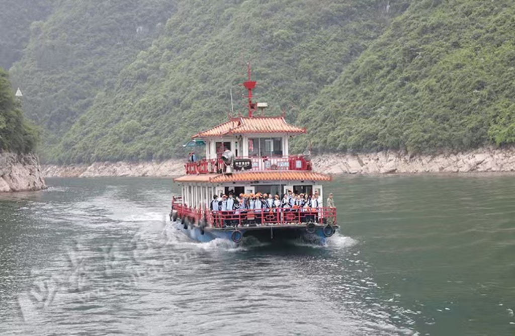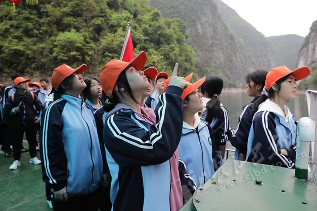 碧波荡漾的江面、层峦叠翠的两岸构成一幅秀美画卷。学生们乘坐游船穿行于龙昌峡、鹦鹉峡等核心景点,导游结合实景,细致讲解峡谷地质地貌、巴人悬棺文化等知识,同学们边走边看、边听边记,在原生态自然课堂中增长见识、愉悦身心。