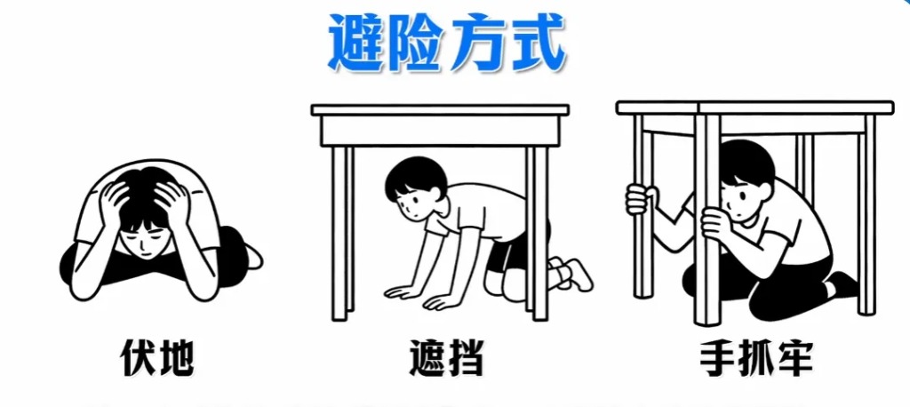 如遇地震首先要保持冷静,不要惊慌。第一时间采取科学避险措施,遵循“震时就近避险,震后迅速撤离”的原则,按“伏地、遮挡、手抓牢”的避险方法进行避险。