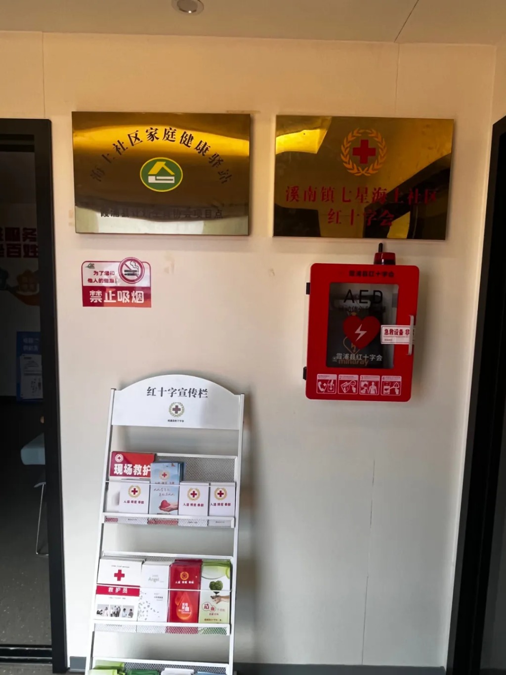 针对海上区域急救响应存在时间差的实际状况,海上社区红十字会专门规划建设了知识宣传与急救服务两大功能区。知识宣传区通过展板、手册及模拟人教具,向群众普及救护常识并支持心肺复苏等实操训练;急救服务区则配备了急救包、自动体外除颤仪(AED)等专业设备,可有效应对海上突发急救需求。