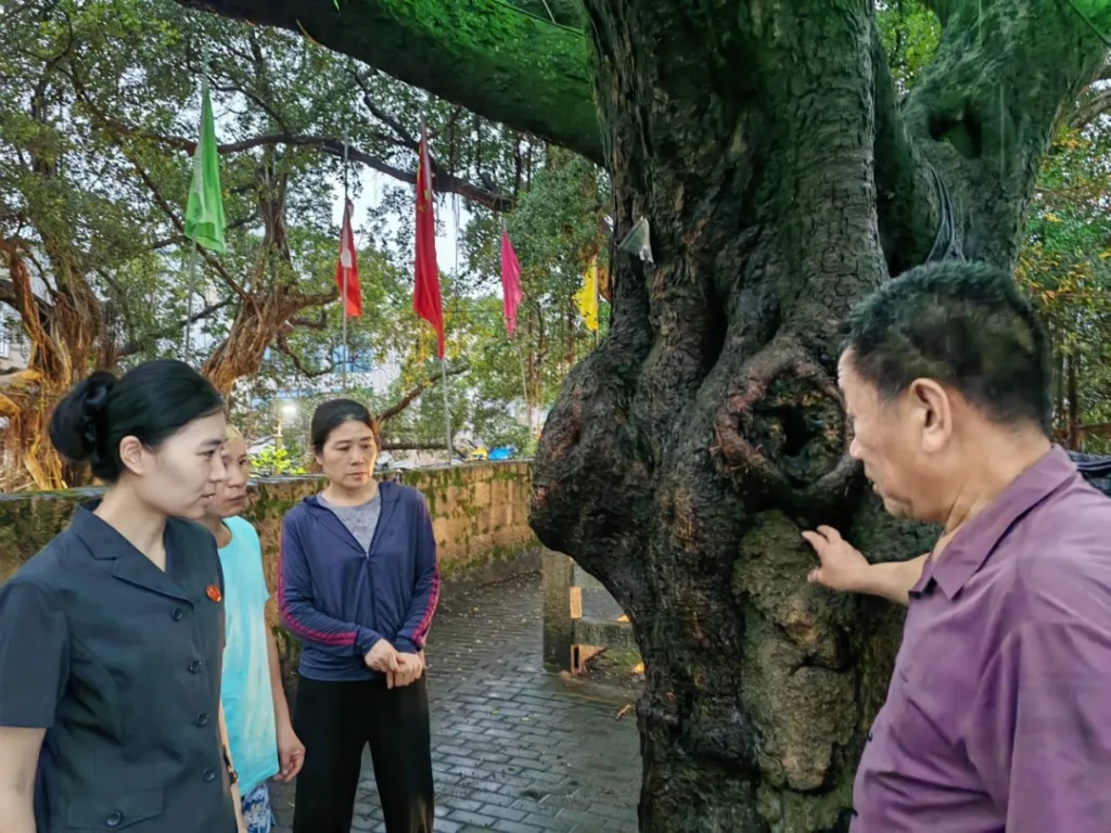 长春镇大京古城堡上共有古榕树10棵,树龄最长达211年,其拥有良好的固碳能力,具有极高的生态保护和文化传承价值。但近年来,受病虫害侵袭和自然老化影响,古树长势衰退,面临严峻的生存挑战。此次被告人选定修复的榕树树龄达121年,树围130厘米,树高13米,位于大京古城堡西城墙。通过实施树洞修补、寄生植物清除等工程,昔日衰败的古树又重新焕发生机,与古城堡一同继续书写跨越百年的生命传奇。