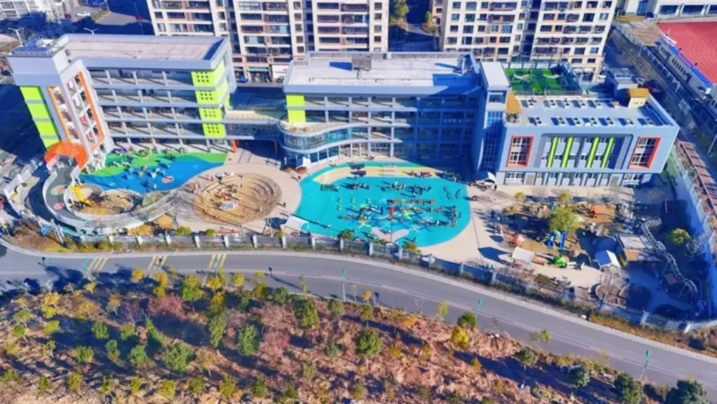 “优质的办学条件”不止修地面这么简单。在该幼儿园的新操场上,有锻炼孩子胆量和四肢协调能力的小山坡和隧道,有作为物理和工程启蒙的沙水区,有体验劳动成果的水稻田;在教学楼里,有能触摸家乡非遗的功能室,有安静看书的阅读角,有摆满积木的建构区,还有满足孩子各种探索的科学区;在幼儿园的门口,新旧教学楼的连廊既是幼儿园的门厅,也成了家长接送孩子的“驿站”,家长在这里既能遮风挡雨,还能交流心得,是家园之间的“连心桥”。