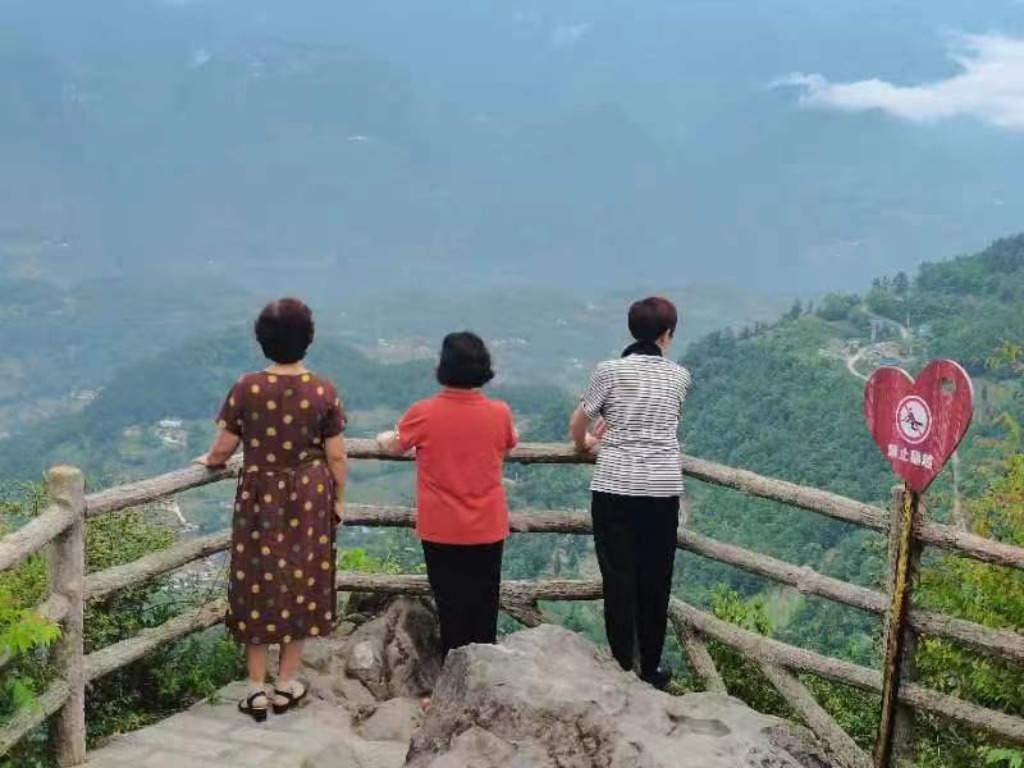 旅游启动后,村容村貌了发生了巨大变化:投资近30万元、面积达500余平方米的文化娱乐活动广场竣工,解决了村民长期无活动场所的难题。投资200万元,村集体修建民宿2栋其中四合院民宿已投入使用,悬崖民宿主体已完工,目前正在招商装修,预计明年投入使用,两栋民宿拥有避暑房间30间。村党支部书记祝正明介绍说:“截至目前,在巴东县发改局帮扶单位的支持下,村新整修加宽景区至高岩的公路2公路,种植优质辣椒1200亩、药材300亩。”“自然景观点连点,蓝天当纸云当笺;斧劈明岩势倒悬,半山腰中吐龙烟;仙山庙里藏牌匾,穿心岩里别有天;鹰子嘴上观三县,朝看晨雾晚观仙。”采访结束时,原村干部谭贤申向记者吟诵了这一首自已创作的打油诗。