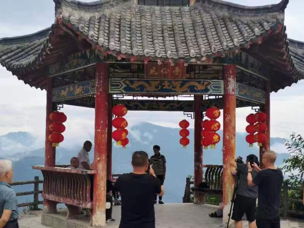 2022年8月13日,多名避暑游客在革命老区巴东县野三关镇穿心岩村景区大佛山景点游玩观光。